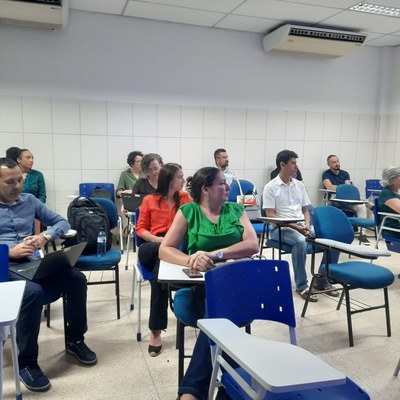 Foto de pessoas reunidas em volta de uma mesa durante reunião de Conselho da UFOB