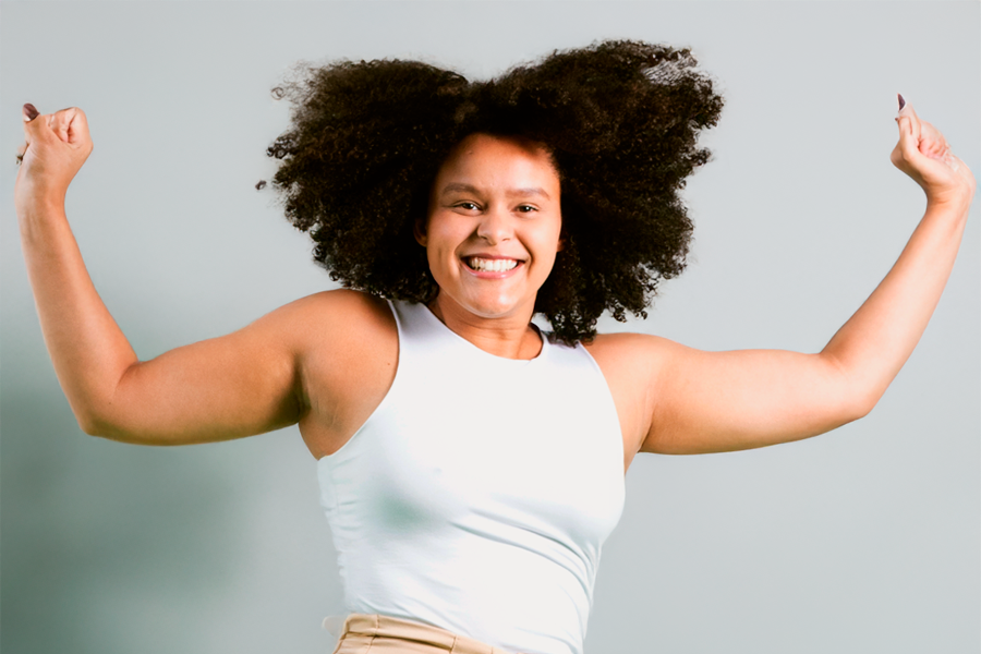 Imagem de estudante pulando de alegria