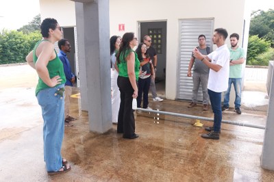 Imagem de dirigentes e estudantes da UFOB durante reunião o secretário de Infraestrutura, Obras, Serviços Públicos e Transporte de Barreiras, Bruno José Castro, e com o fiscal do contrato com a empresa concessionária de transporte público, Dourival Mamed,