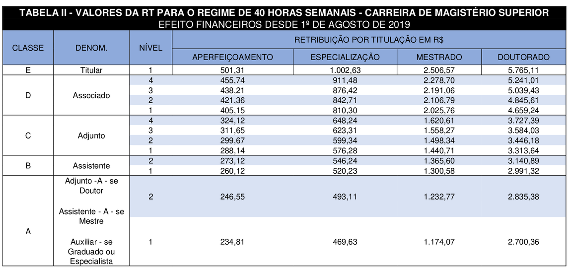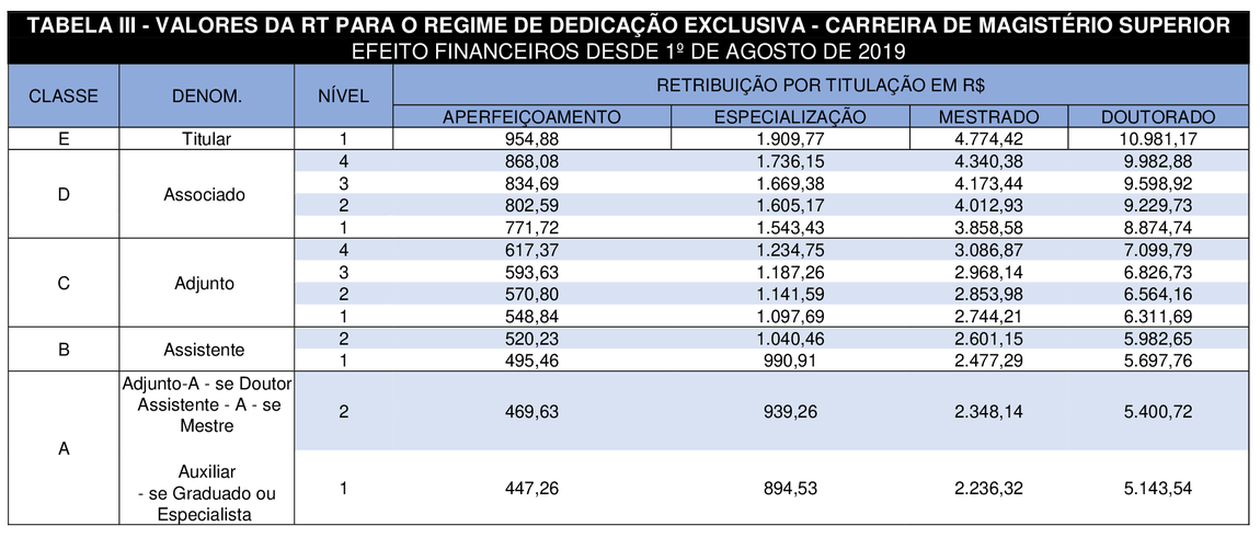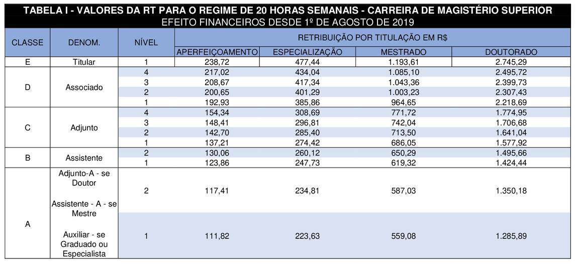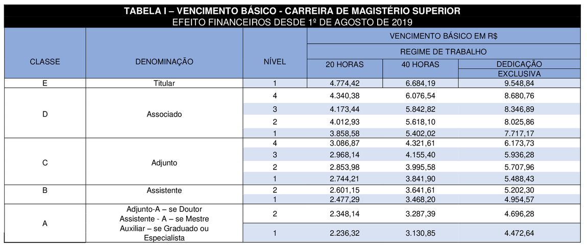 TABELA SALARIAL – conforme anexos da Lei 12.772/2012