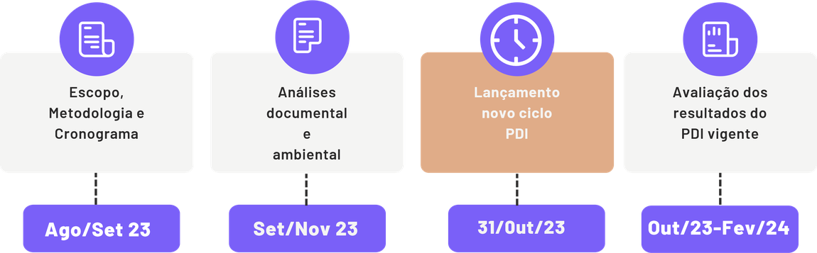 A fase de preparação se refere à primeira fase de elaboração do Plano de Desenvolvimento Institucional (PDI) da UFOB, visando a atualização do PDI para o novo ciclo. Esta fase de preparação é composta pelas seguintes etapas: (i) Definição do escopo, metodologia e cronograma; (ii) Análise Documental (legislação vigente, políticas e diretrizes nacionais, regimento e o estatuto da UFOB); (iii) Avaliação dos resultados do PDI vigente; (iv) Diagnóstico Situacional/Análise Ambiental por meio de ferramentas estratégicas, tais como: Matriz SWOT e Análise PESTEL. Esta fase contou com reuniões preparatórias, com a participação dos gestores das unidades administrativas e acadêmicas da UFOB, ocorrendo entre os meses de agosto de 2023 e fevereiro de 2024.