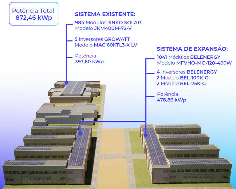 Esquematização dos sistemas de energia solar fotovoltaica no CRES.
