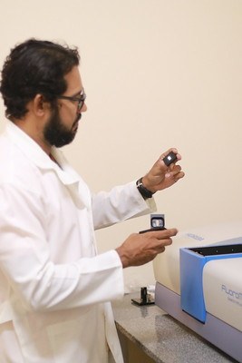 Onde e como usar esse equipamento: Utilizado para análise de fluorescência de amostras em laboratórios de química e física. Preparar a amostra conforme protocolo, ajustar os parâmetros de excitação e emissão e registrar os espectros obtidos.