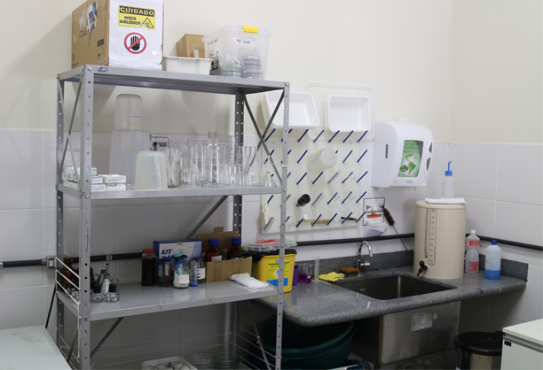 Com presença de equipamentos como: autoclave, estufa de secagem e esterilização, estufa de secagem com renovação de ar e refrigerador vertical. Sendo utilizado para lavagem e esterilização de material de laboratório, preparação de meio de cultura, armazenamento de amostras biológicas e meios de cultura. Também utilizado para crescimento de fungos e bactérias e secagem de plantas.