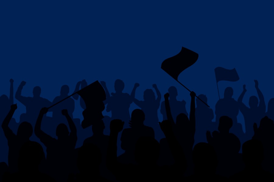 Imagem em fundo azul de pessoas mobilizadas