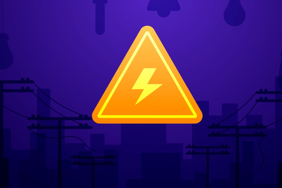 Arte em fundo lilás com triângulo e sinal de exclamação