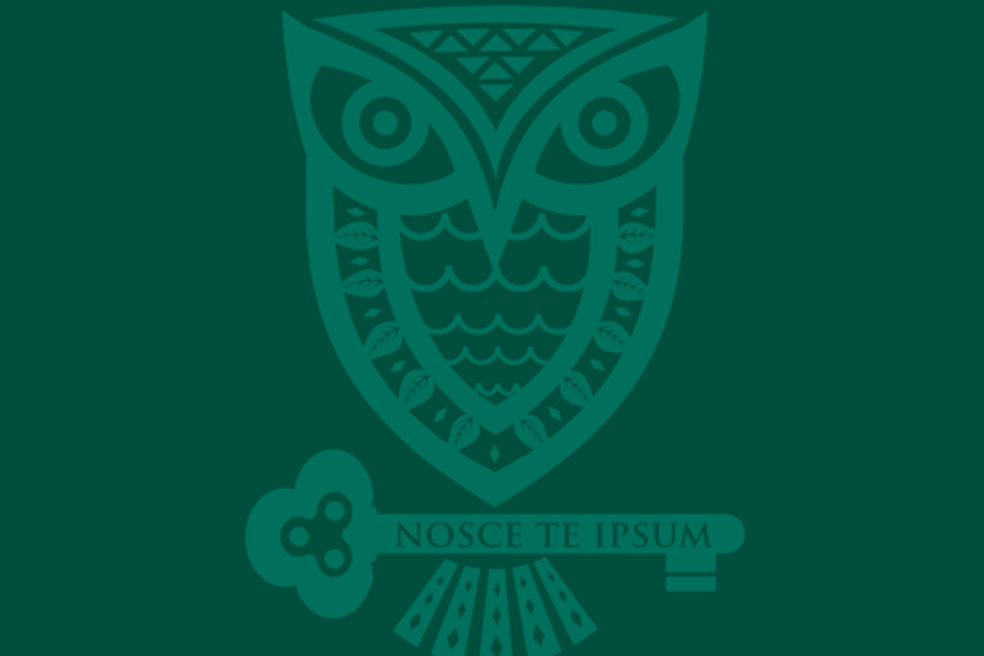 Arte em fundo verde escuro com a coruja da marca da UFOB