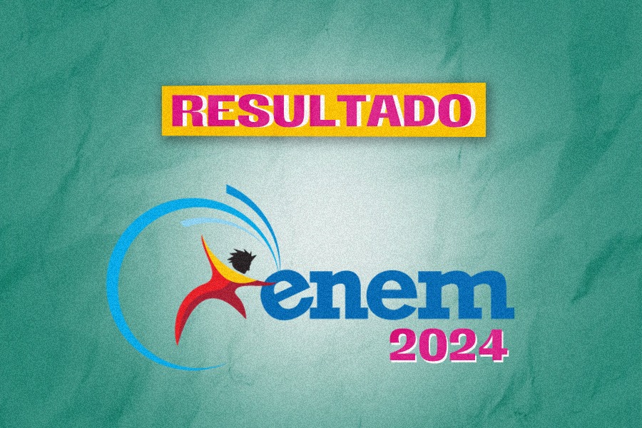 Arte em fundo verde com texto "Resultado Enem 2024"