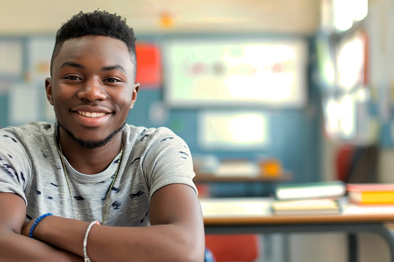 Imagem de estudante negro em uma sala de aula