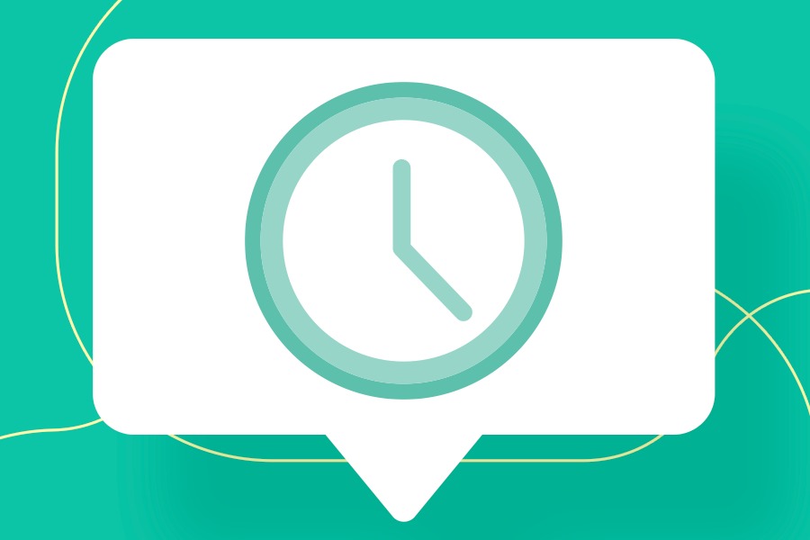 Imagem em fundo verde e branco com símbolo do relógio