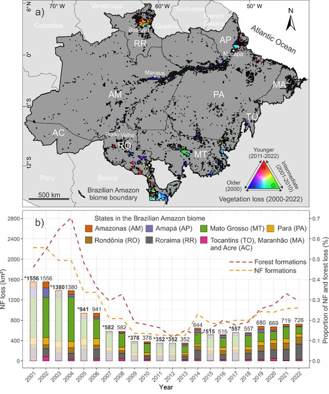 A pesquisa intitulada “Unaccounted for nonforest vegetation loss in the Brazilian Amazon” contou com a análise espaço-temporal de imagens de satélite baseada na metodologia de monitoramento PRODES para quantificar e compreender as perdas de áreas não florestais na Amazônia, igualmente vitais para a conservção da biodiversidade e ecossistemas regionais.