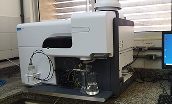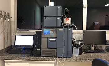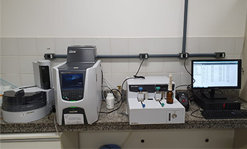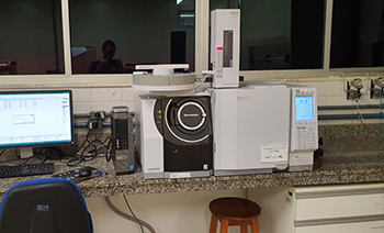 Cromatógrafo gasoso acoplado a espectrômetro de massas.